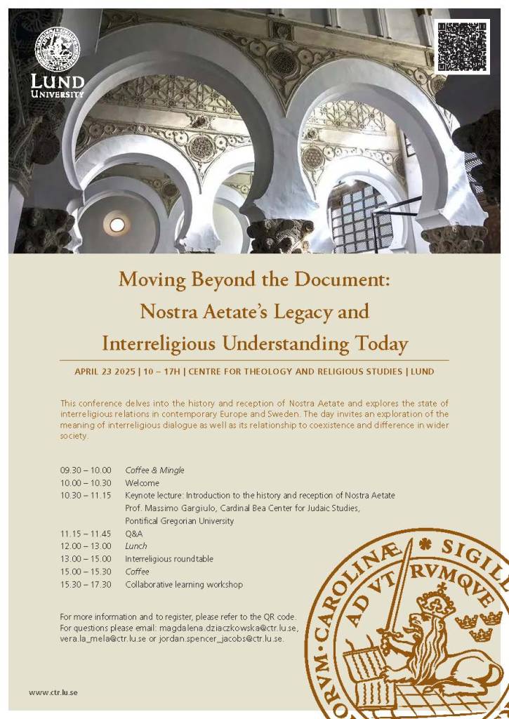 Please remember to sign up for the Nostra Aetate conference in Lund today 15th of April at the latest! Please see the flyer below for information, click here to get to the event on the university website, or click here to sign up directly – you can also find the link on the university website.